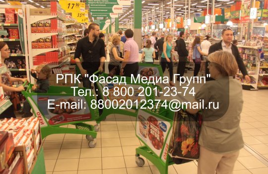 РПК «Фасад Медиа Групп» размещает рекламу в супермаркетах на профессиональной основе. У нас заключены договоры на размещение рекламах материалов. Мы предлагаем различные рекламные форматы: от статичных баннеров до рекламных роликов на мониторах