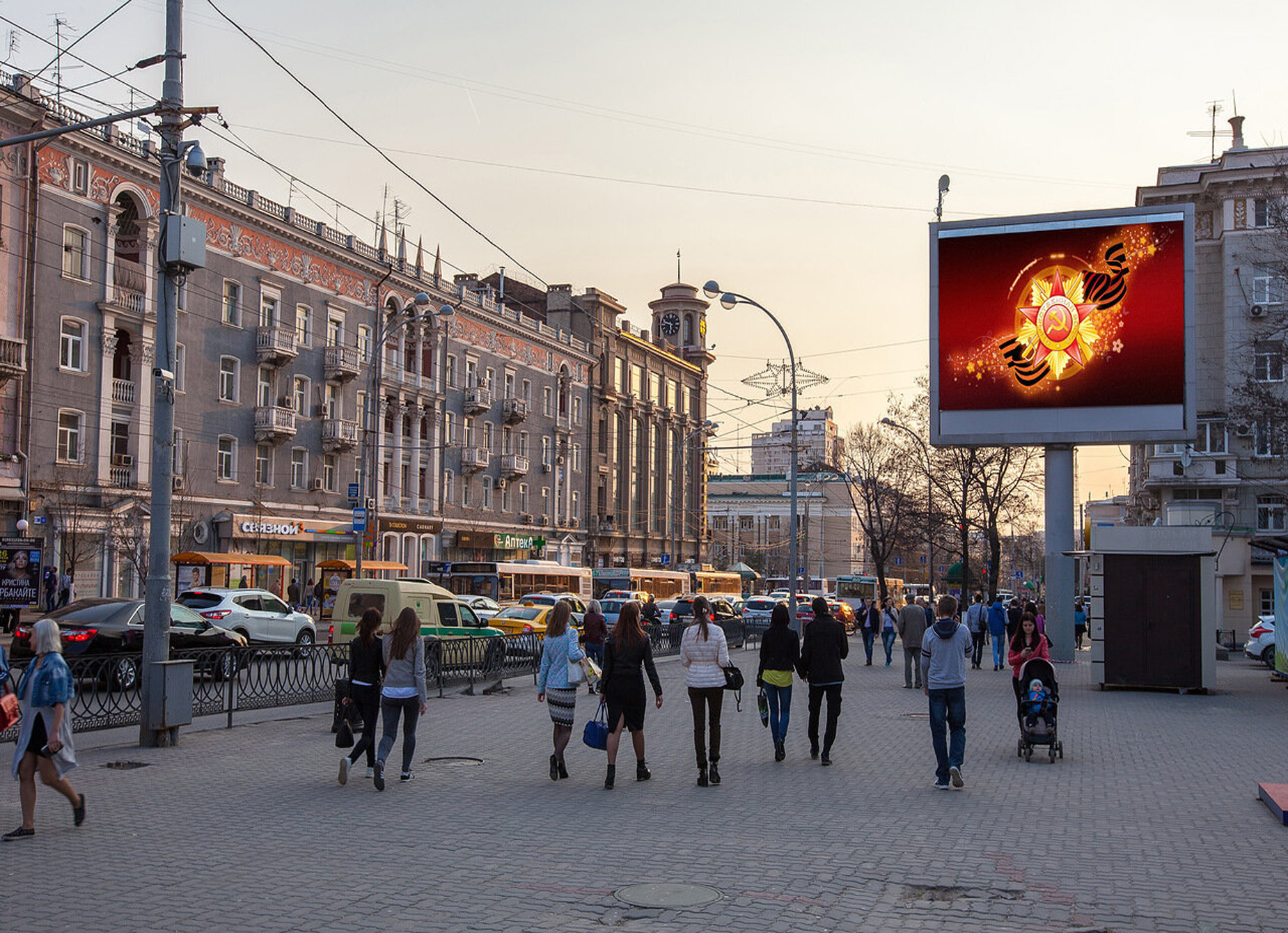 Можно коротко сказать, что реклама на видеоэкранах ориентирована на всех горожан.