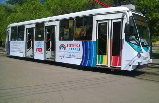 Многие рекламодатели с большим удовольствием размещают рекламу на/в трамваях. Что же представляет собой реклама на/в трамваях? Реклама на/в трамваях – это рекламное объявление, размещенное как внутри салона трамвая (листовки, постеры, мониторы), так и снаружи (оклейка дверей, бортов, заднего стекла, полностью кузова транспортного средства), сообщающее пассажирам, прохожим, а также водителям частных авто информацию о предлагаемых товарах, услугах и местах их приобретения.