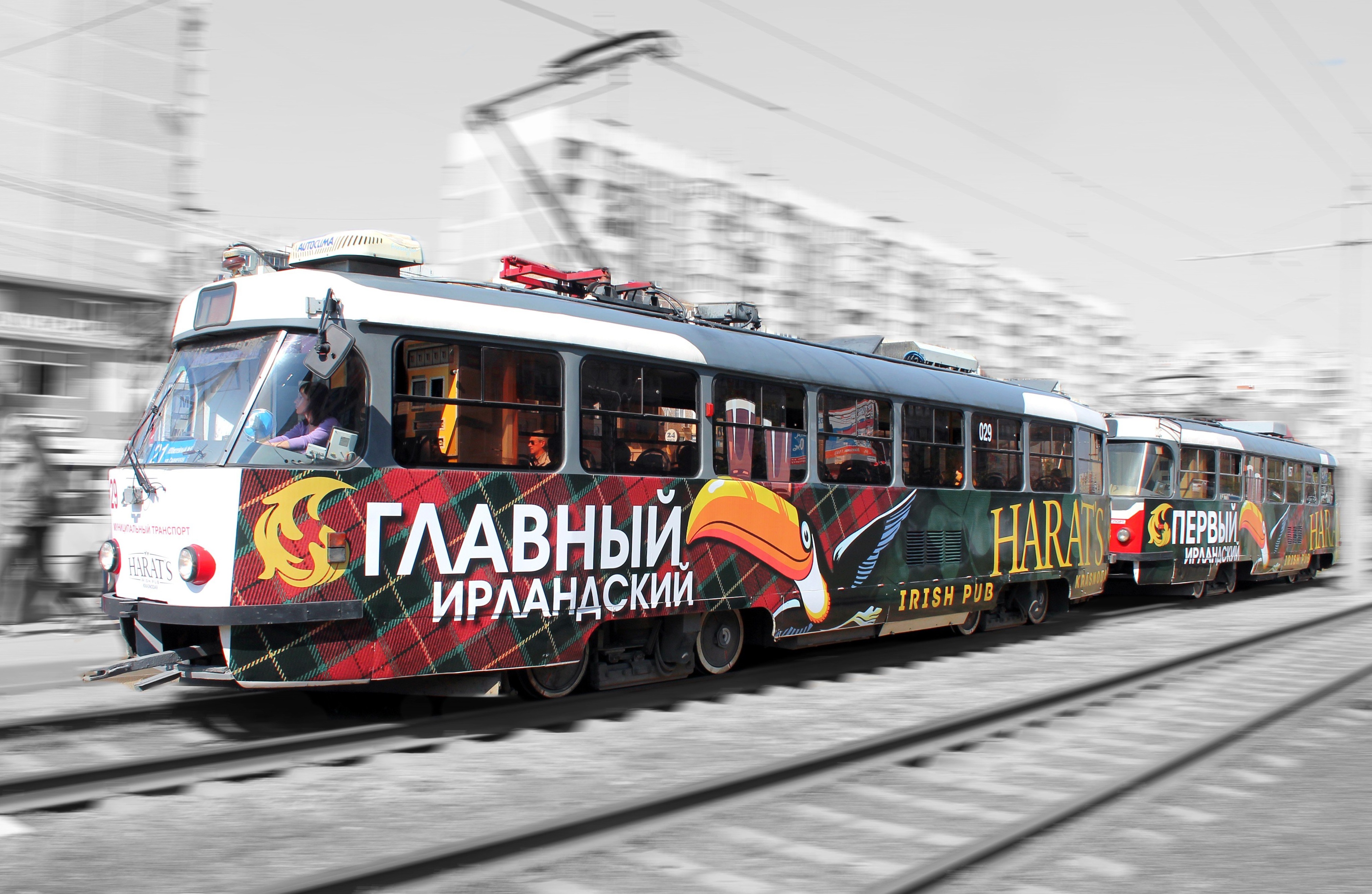 Полная оклейка трамвая на фото выше